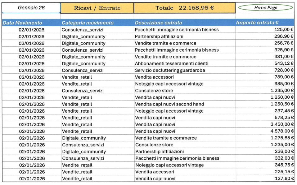 Ti permette di monitorare entrate, uscite e margini senza formule complesse, migliorando la gestione del negozio, la pianificazione delle spese e la capacità di capire cosa sta funzionando davvero.