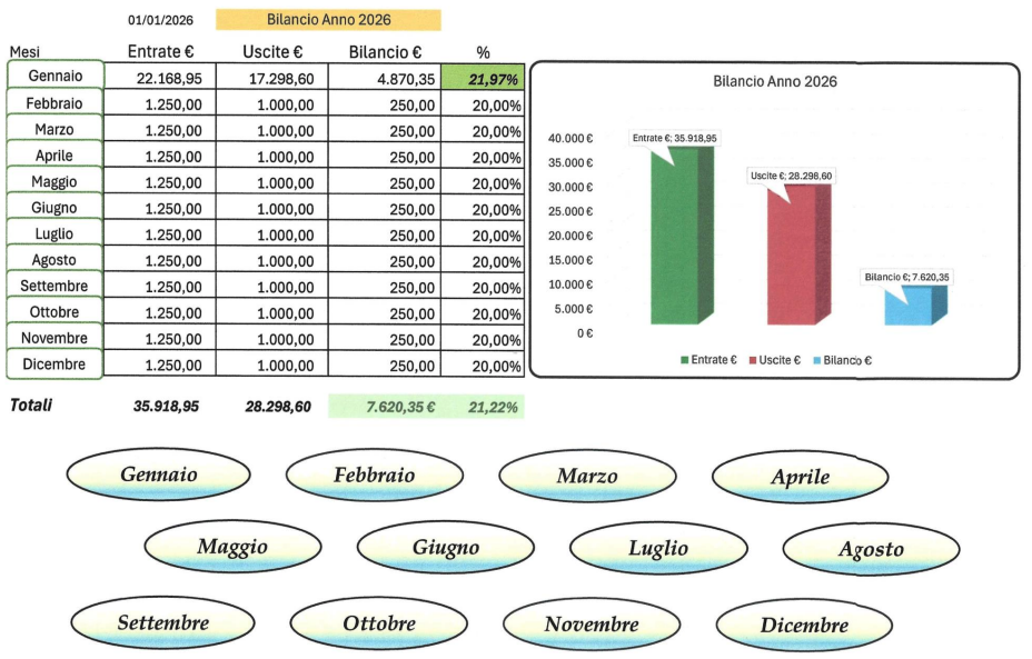 Il File di Controllo di Gestione è progettato per aiutarti a trasformare dati sparsi in una visione chiara, organizzata e facilmente consultabile ogni mese.