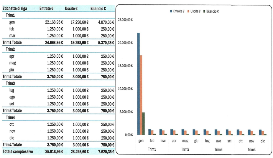 Questa sezione utilizza un grafico pivot per offrire una visione dinamica e interattiva dei dati, consentendo di filtrare e analizzare le informazioni secondo diverse dimensioni per periodo